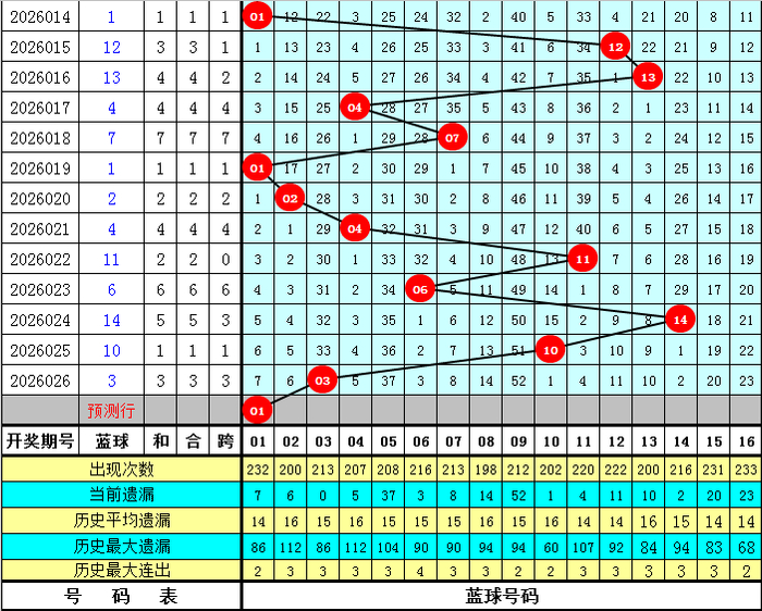 蓝球分析:在第027期历史同时开奖中,蓝球号码奇偶比为16:7,最近5年同时奇偶走势为:偶、奇、偶、奇、偶,本年同时看好开极端数蓝球,参考号码01。