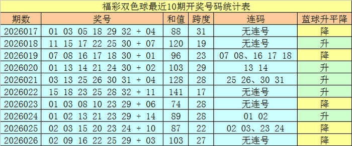上期开奖:福彩双色球第2026026奖号开出:02 09 16 22 25 29 + 03体育录像/图片,红球号码和值为103,首尾间距为27,无连号。