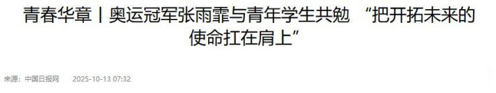 中国日报网——芳华华章丨奥运冠军张雨霏与后生学生共勉 “把开导未来的就业扛在肩上”