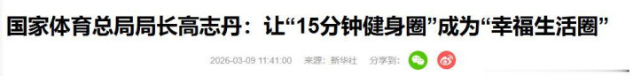新华社——国度体育总局局长高志丹:让“15分钟健身圈”成为“幸福生存圈”